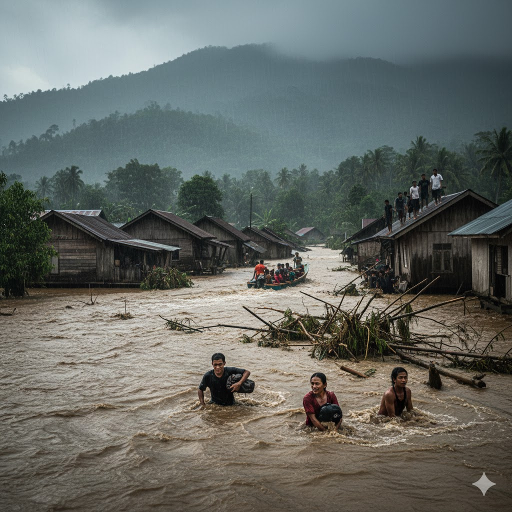 Sumatra — Hujan dengan intensitas tinggi yang terjadi selama beberapa hari terakhir membuat sejumlah daerah di Sumatra mengalami banjir besar. Genangan air dilaporkan merendam permukiman, akses jalan, hingga fasilitas umum. Kejadian ini dengan cepat menjadi viral setelah warga mengunggah video kondisi banjir ke berbagai platform media sosial.